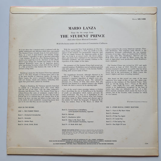 Mario Lanza – Sings The Hit Songs From The Student Prince And Other Great Musical Comedies - 1954 - Vinyl Record LP