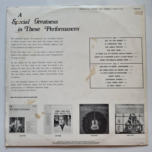 Mario Lanza – Christmas Hymns And Carols - 1963 - Vinyl Record LP