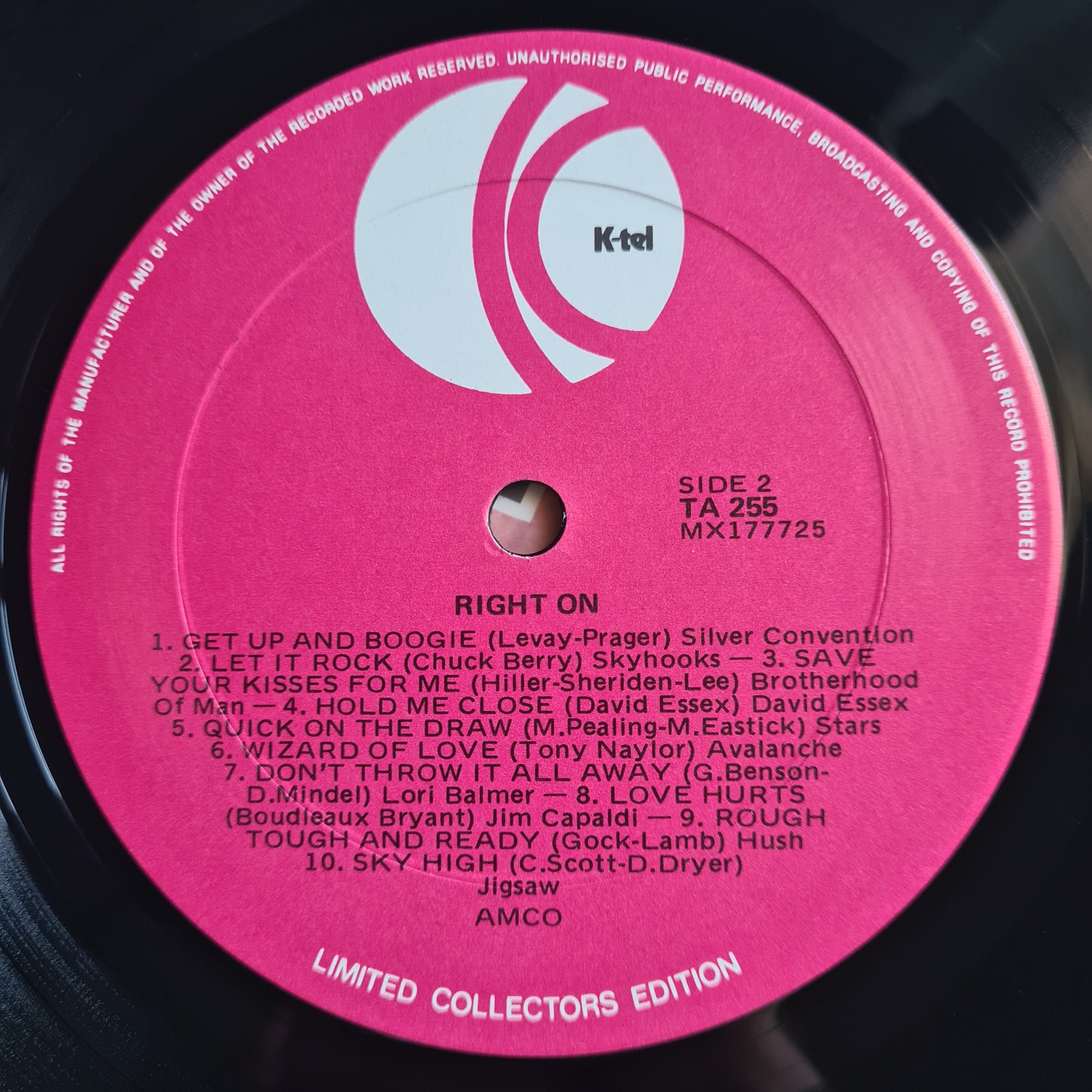 Various Artists/Hits album - Right On - 1976 - Vinyl Record