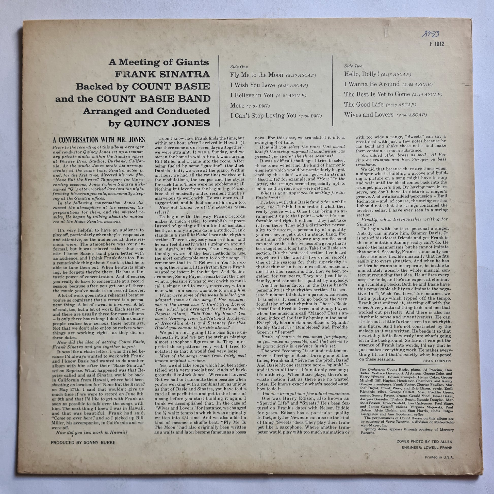 Frank Sinatra • Count Basie And His Orchestra* – It Might As Well Be Swing - 1964 - Vinyl Record LP