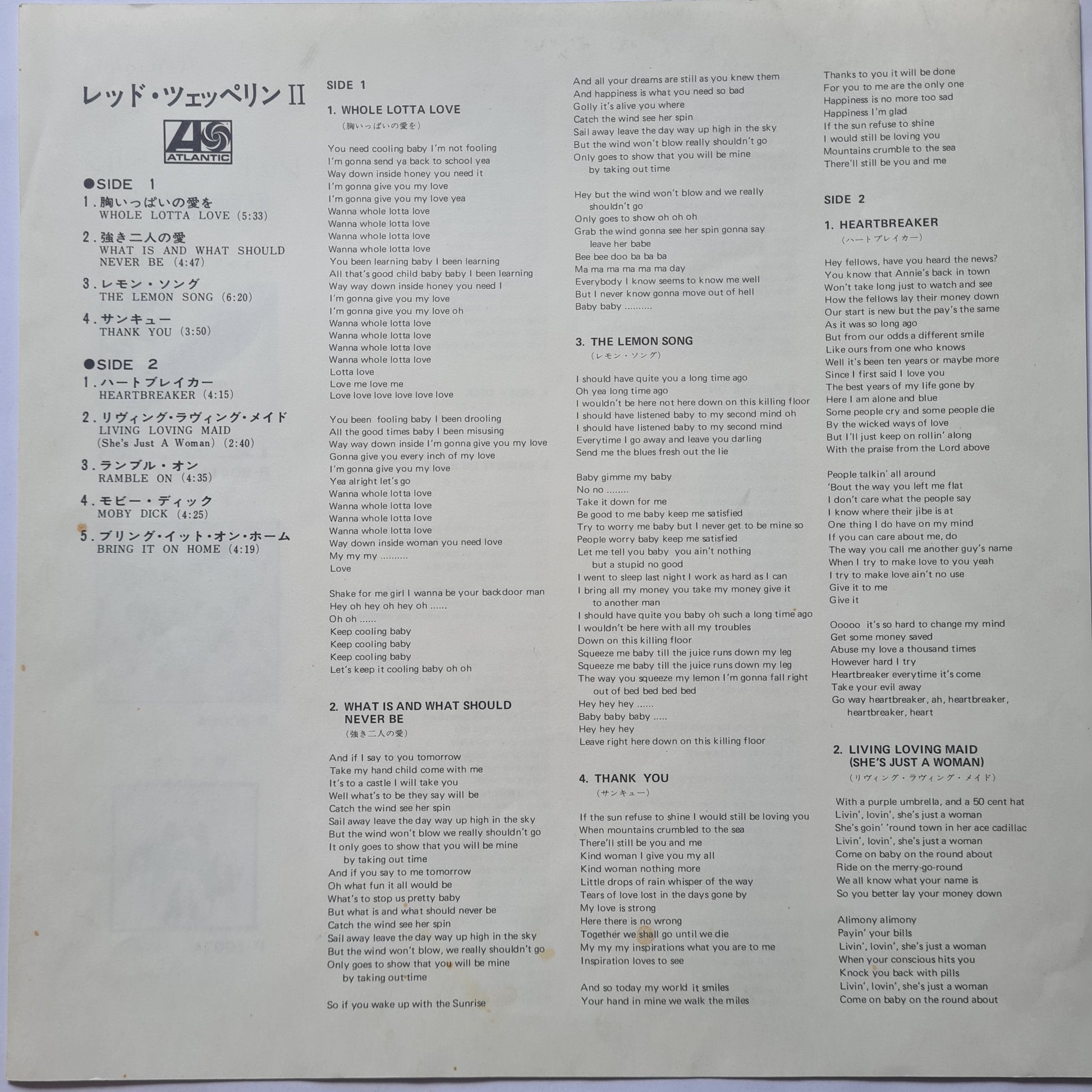 Led Zeppelin – Led Zeppelin 2 - 1969 (1976 Gatefold Japanese Pressing) - near mint Vinyl Record LP