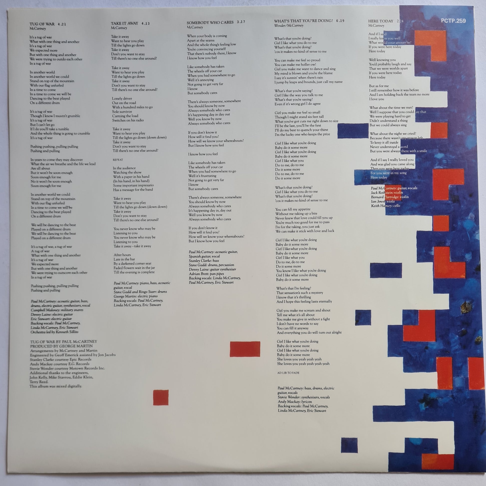 Paul McCartney (Beatles) – Tug Of War - 1982 Vinyl Record LP (near mint)