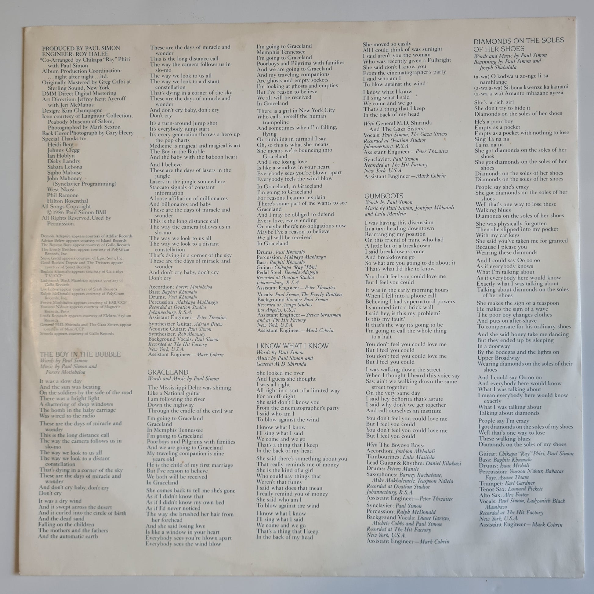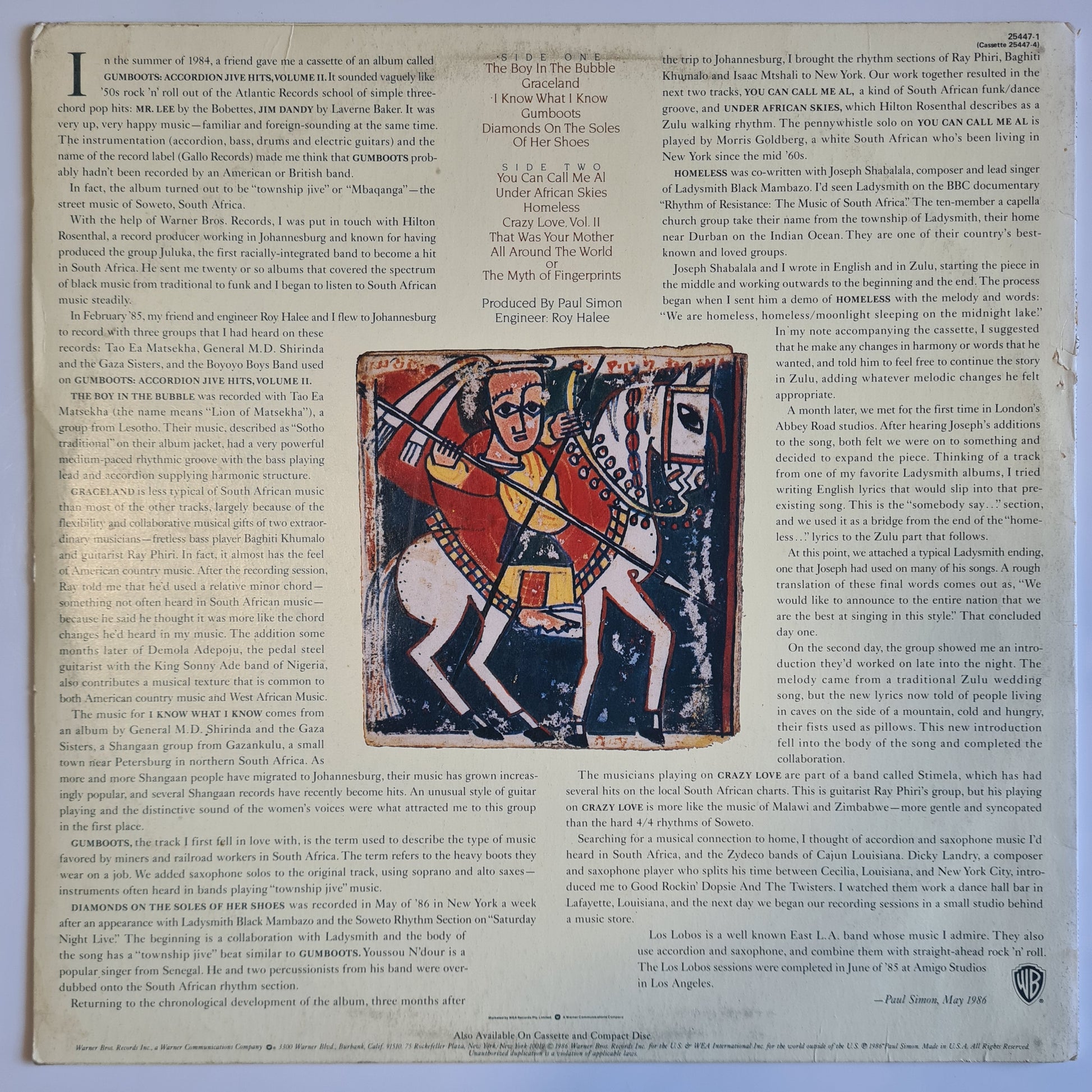 Paul Simon – Graceland - 1986 - Vinyl Record LP
