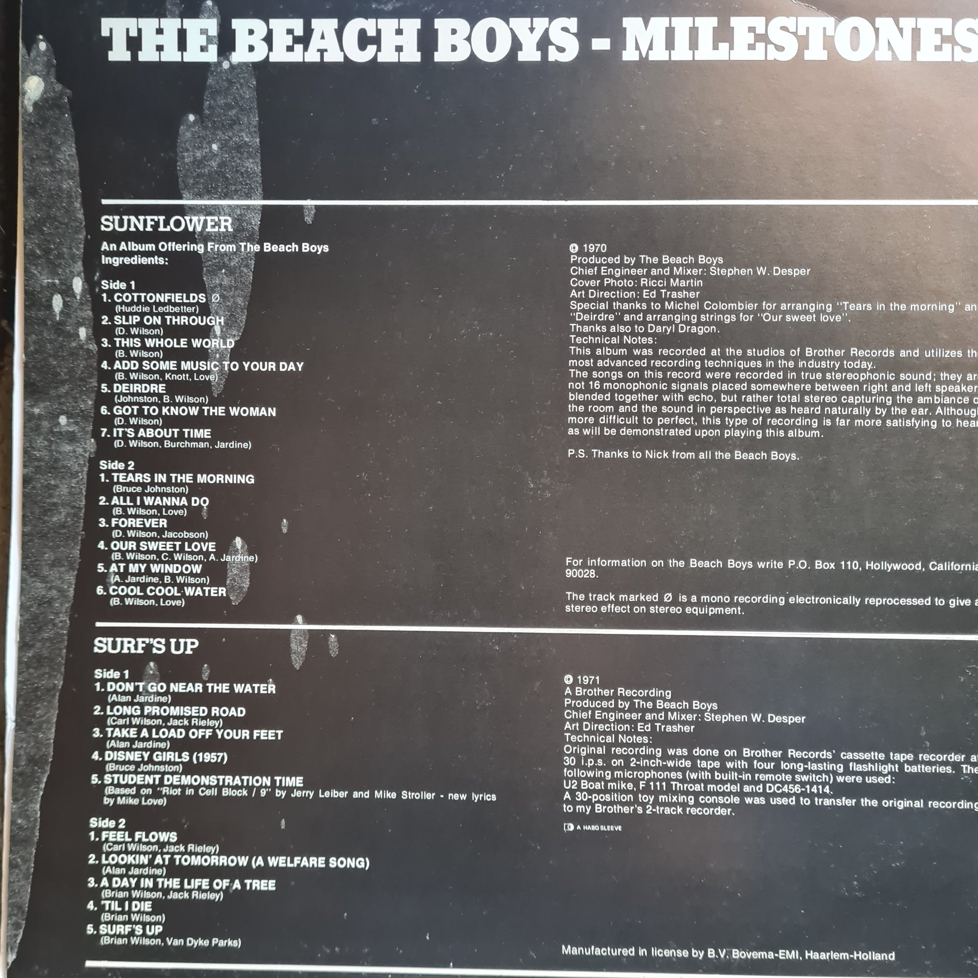 The Beach Boys – Sunflower (1970) / Surf's Up (1971) - 70's Netherlands Pressing - 2LP Vinyl Record