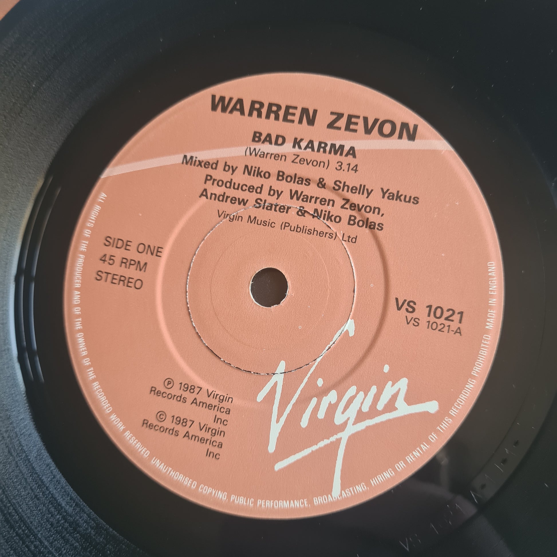 Warren Zevon – Bad Karma - 1987 (UK pressing) - Vinyl Record 7" Single - 45 RPM
